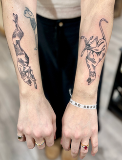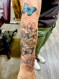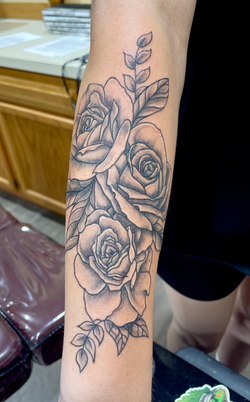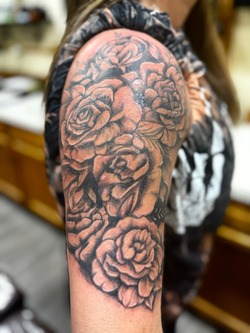Black and grey tattoos are a great way to develop bold designs that focus more on form and shadow. This style is a beautiful way to develop shape, depth, and flow that compliments the body and skin. The range of this style is vast, from bold tribal to intricate woodcut designs, from sharp crisp edges to the softest transitions.